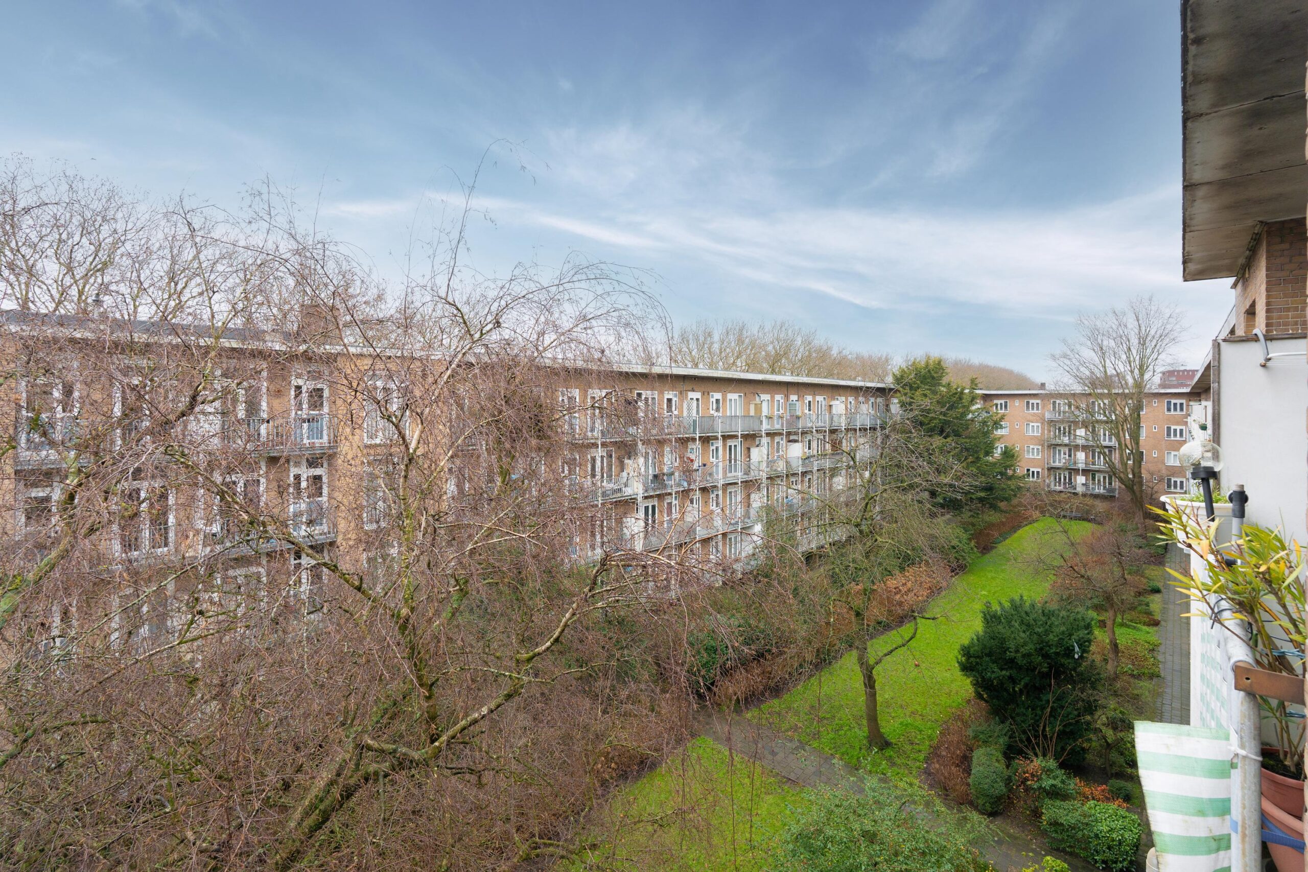 *** See english version below*** Geuzenstraat 25-3 – Licht en flexibel in te delen appartement met twee balkons in Amsterdam-West Wonen in een van de meest geliefde delen van Amsterdam? Dit sfeervolle en verrassend flexibel in te delen appartement van ca. 57 m² in De Baarsjes biedt het allemaal. Met twee balkons, een lichte woonkamer en-suite én de mogelijkheid tot het creëren van een tweede slaapkamer, is dit een woning die met je mee kan groeien. De woonkamer en eetkamer zijn uitgevoerd als een klassieke dubbele indeling en vormen samen een heerlijke, lichte leefruimte. Dankzij de grote raampartijen aan de voorzijde geniet je hier van een vrij uitzicht over de Kostverlorenvaart. De eetkamer aan de voorzijde grenst direct aan het balkon, dat ideaal is voor een ochtendkoffie in de zon. Dat kamergedeelte is eventueel als tweede slaapkamer te realiseren – perfect voor logees, een werkruimte of een compacte extra slaapkamer. Aan de achterzijde van de woning bevindt zich de keuken, met directe toegang tot het tweede balkon. Dit balkon kijkt uit over de gemeenschappelijke binnentuin, een rustig en groen erf dat onder architectuur van Mien Ruys is aangelegd. De keuken is voorzien van een keukenblok met bovenkasten en een wasemkap en biedt daarnaast mogelijkheden om deze geheel naar eigen wens te moderniseren of uit te breiden. De ruime slaapkamer aan de achterzijde is rustig gelegen en staat in directe verbinding met de badkamer, voorzien van douche en wastafel. Deze slaapkamer is bovendien uitgerust met een airco-unit, wat zorgt voor extra comfort tijdens warme dagen. Dankzij de en-suite indeling en de mogelijke extra (ruime) slaapkamer aan de voorzijde is de woning praktisch én veelzijdig in gebruik. Daarnaast beschikt het appartement over een separaat toilet, wat bijdraagt aan het dagelijks comfort. De woning is voorzien van dubbel glas (houten kozijnen aan de voorzijde en kunststof aan de achterzijde) en een cv-ketel uit 2014. In de onderbouw is een ruime privéberging van circa 6 m² aanwezig. De ligging in De Baarsjes maakt het plaatje compleet. Op loopafstand vind je het Mercatorplein, de Jan Evertsenstraat en het Rembrandtpark. In de directe omgeving zijn tal van gezellige cafés, restaurants, winkels en sportvoorzieningen te vinden. Bovendien zijn de bereikbaarheid en verbindingen uitstekend, zowel met het openbaar vervoer als met de auto via de Ring A10. Kenmerken * Woonoppervlakte ca. 57 m² (NEN2580) * Mogelijkheid tot creëren van een tweede slaapkamer (thans 1 slaapkamer / 3 kamers mogelijk) * Balkon aan de voorzijde met uitzicht op de Kostverlorenvaart * Balkon aan de achterzijde met uitzicht op de gemeenschappelijke binnentuin ontworpen door Mien Ruys * Actieve en gezonde VvE met MJOP en verduurzamingsplannen (€167,30 p/m) * Erfpacht afgekocht tot 15-09-2033; daarna eeuwigdurend vastgeklikt op € 1.070,- per jaar (te indexeren) * Dubbel glas (voorzijde hout / achterzijde kunststof) * Airco aanwezig in de slaapkamer aan de achterzijde * Cv-ketel uit 2014 * Privéberging van circa 6 m² * Oplevering: per direct Kom je kijken? Dit is zo’n appartement dat je echt even moet ervaren. Neem snel contact op voor een bezichtiging – we laten je deze fijne woning graag zien! Deze informatie is door ons met de nodige zorgvuldigheid samengesteld. Onzerzijds wordt echter geen enkele aansprakelijkheid aanvaard voor enige onvolledigheid, onjuistheid of anderszins, dan wel de gevolgen daarvan. Alle opgegeven maten en oppervlakten zijn indicatief. Koper heeft zijn eigen onderzoeksplicht naar alle zaken die voor hem of haar van belang zijn. Met betrekking tot deze woning is de makelaar adviseur van verkoper. Wij adviseren u een deskundige (NVM-)makelaar in te schakelen die u begeleidt bij het aankoopproces. Indien u specifieke wensen heeft omtrent de woning, adviseren wij u deze tijdig kenbaar te maken aan uw aankopend makelaar en hiernaar zelfstandig onderzoek te (laten) doen. Indien u geen deskundige vertegenwoordiger inschakelt, acht u zich volgens de wet deskundige genoeg om alle zaken die van belang zijn te kunnen overzien. Van toepassing zijn de NVM/MVA voorwaarden. ---------------------------------------------- Geuzenstraat 25-3 – Bright and Flexible Apartment with Two Balconies in Amsterdam-West Looking to live in one of Amsterdam’s most sought-after neighborhoods? This charming and surprisingly flexible apartment of approximately 57 m² in De Baarsjes has it all. With two balconies, a bright living room en-suite, and the possibility to create a second bedroom, this home can grow with you. The living room and dining room are arranged in a classic double layout, together forming a wonderful, bright living space. Thanks to the large windows at the front, you can enjoy an unobstructed view over the Kostverlorenvaart. The dining room at the front opens directly onto the balcony, which is ideal for enjoying a morning coffee in the sun. This part of the room can also be converted into a second bedroom—perfect for guests, a home office, or a compact extra bedroom. At the rear of the apartment is the kitchen, with direct access to the second balcony. This balcony overlooks the communal courtyard, a quiet and green space designed by renowned landscape architect Mien Ruys. The kitchen is fitted with a base unit, upper cabinets, and an extractor hood, while offering the opportunity to modernize or expand it entirely according to your own style and needs. The spacious bedroom at the rear is quietly situated and has direct access to the bathroom, which includes a shower and sink. This bedroom is also equipped with an air conditioning unit, providing extra comfort on warm days. Thanks to the en-suite layout and the potential for an additional (spacious) bedroom at the front, the apartment is both practical and versatile. A separate toilet adds to the daily convenience. The property features double glazing (wooden frames at the front and PVC at the rear) and a central heating boiler 