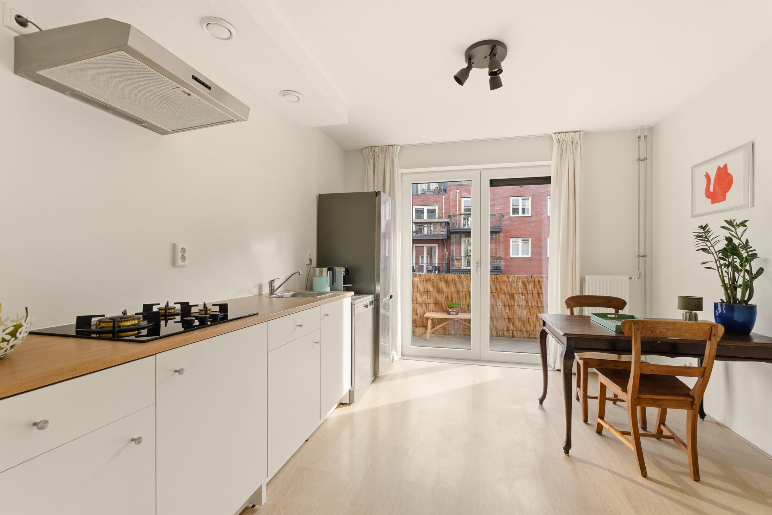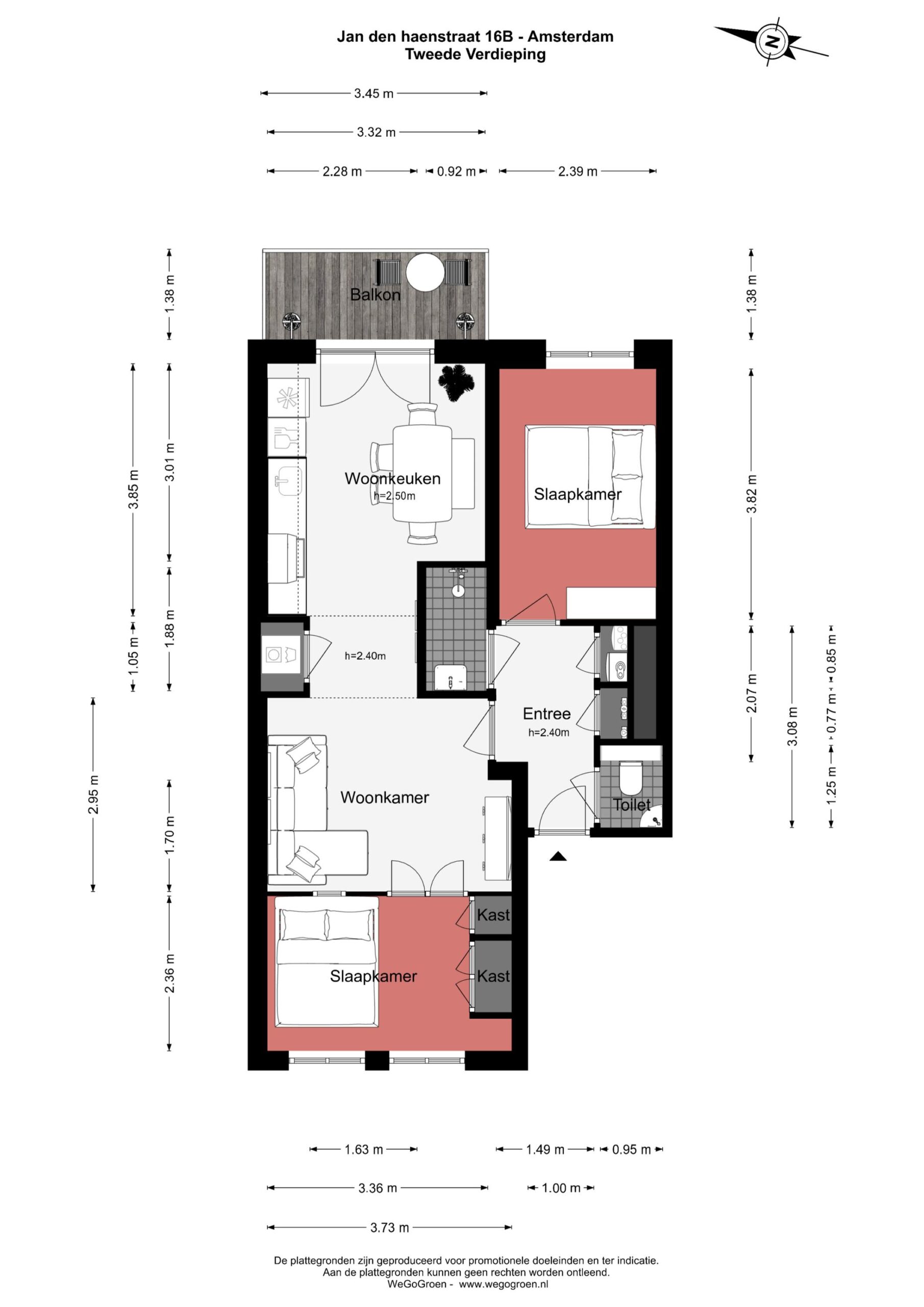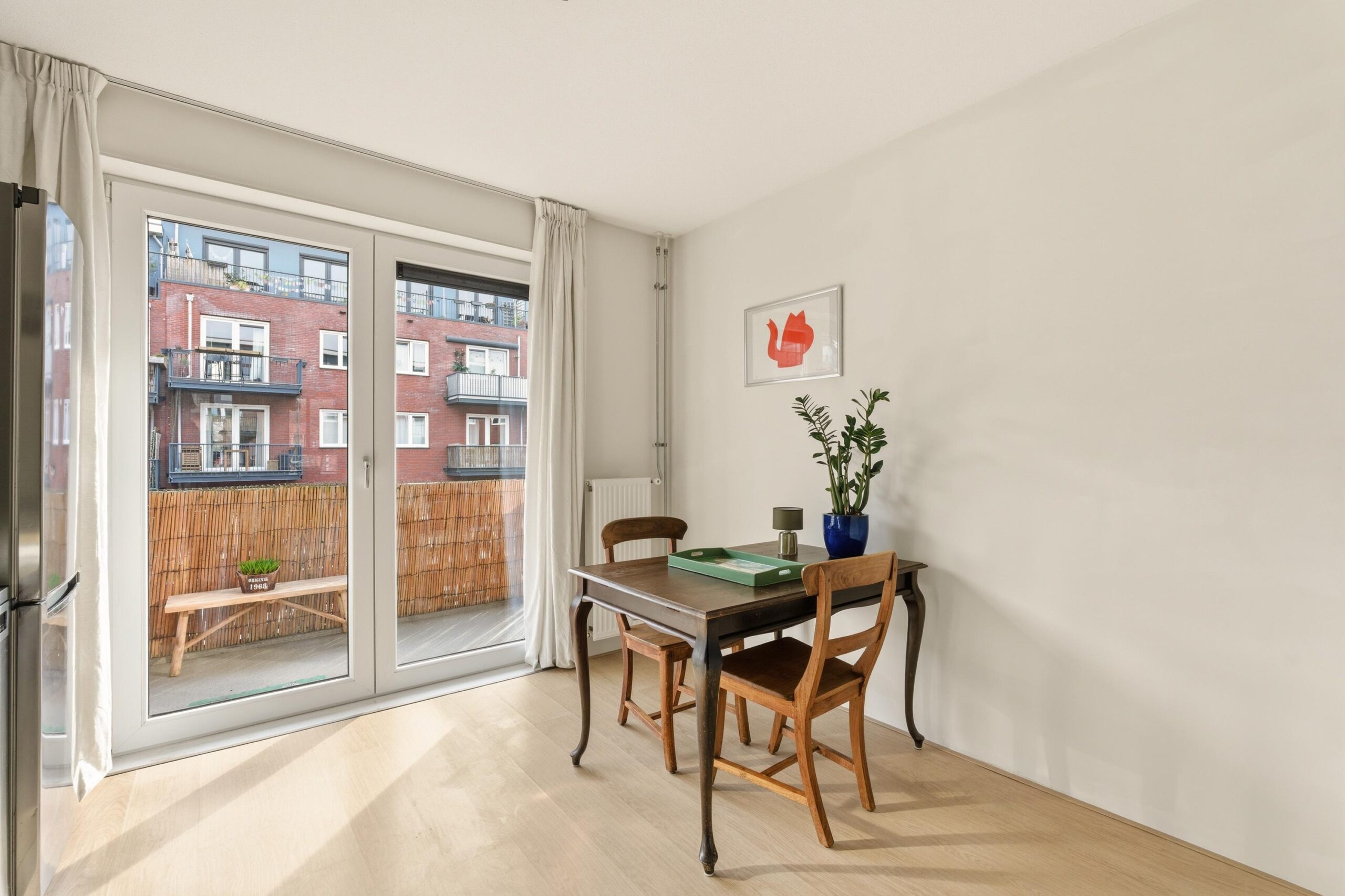 Jan den Haenstraat 16 B, Amsterdam Stijlvol en hoogwaardig gerenoveerd 3-kamerappartement, gelegen in een populaire wijk in Amsterdam-West. De woning combineert comfortabel wonen met een levendige omgeving, op korte afstand van onder andere de Jordaan, het Erasmuspark en het Westerpark. Bovendien beschikt het appartement over een zonnig balkon aan de achterzijde. Indeling De woning is gelegen op de tweede verdieping en is bereikbaar via het gemeenschappelijke trappenhuis. Entree in de hal, die toegang geeft tot alle vertrekken. Hier bevinden zich het separate toilet en de badkamer, voorzien van een inloopdouche en wastafel. De slaapkamer ligt aan de voorzijde en is dankzij de grote raampartijen heerlijk licht. Aangrenzend bevindt zich de woonkamer met voldoende ruimte voor een zithoek. Centraal in de woning ligt de woonkeuken met eethoek. De moderne keuken is uitgerust met onder andere een gaskookplaat, koelkast, vaatwasmachine en afzuigkap en biedt voldoende werk- en bergruimte. Vanuit de keuken is het balkon aan de achterzijde bereikbaar. Aan de achterzijde bevindt zich ook de tweede slaapkamer, die uitstekend kan dienen als werk-, logeer- of kinderkamer. Bijzonderheden De woning is in 2018/2019 volledig gerenoveerd als onderdeel van het project “BLOOM”. Hierbij zijn onder meer de installaties (water, elektra en gas) vernieuwd, evenals de meterkast. Daarnaast zijn de voor- en achtergevel geïsoleerd en voorzien van nieuwe kozijnen met draai-/kiepramen en isolatieglas. Het appartement is goed geïsoleerd en beschikt over energielabel A. Ligging Gelegen in de geliefde wijk Bos en Lommer, in een rustige straat met veel groen en parkeergelegenheid. In de directe omgeving vind je diverse winkels, supermarkten, horeca en sportfaciliteiten. De bereikbaarheid is uitstekend: zowel station Sloterdijk als Amsterdam Centraal zijn binnen circa 15 minuten fietsen te bereiken. Ook de Ring A10 is snel bereikbaar en er zijn diverse tram- en bushaltes in de nabije omgeving. Voor ontspanning en recreatie liggen het Erasmuspark en Westerpark op korte afstand. Kenmerken: - Woonoppervlakte: 54 m² - Twee slaapkamers - Volledig gerenoveerd in 2018/2019 - Zonnig balkon op het oosten - Energielabel A; volledig geïsoleerd - Cv-Ketel 2017, HR++ glas - Moderne keuken en badkamer - Vrij uitzicht aan de voorzijde - Gemeenschappelijke fietsenstalling onder het complex - Erfpacht is afgekocht t/m 2067 en is daarna vastgeklikt - VVE: professioneel beheerd, MJOP aanwezig - VVE: Maandelijkse bijdrage: € 84,59 - Oplevering in overleg Mis deze unieke kans niet en maak snel een afspraak voor een bezichtiging! De verkoopinformatie is met grote zorgvuldigheid samengesteld doch voor de juistheid van de inhoud kunnen wij niet instaan en er kunnen derhalve geen rechten aan worden ontleend. De inhoud is puur informatief en mag niet worden beschouwd als een aanbod. Daar waar gesproken wordt over inhoud, oppervlakten of afmetingen moeten deze worden beschouwd als indicatief en als circa maten. U dient als koper zelf onderzoek te verrichten naar zaken die voor u van belang zijn. Wij raden u in dat verband aan uw eigen NVM-makelaar in te schakelen.